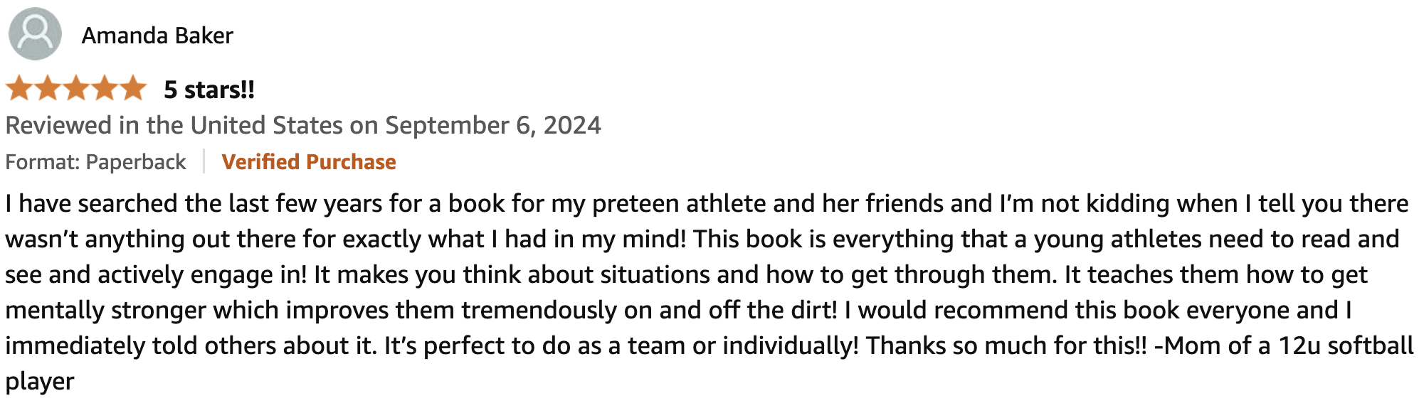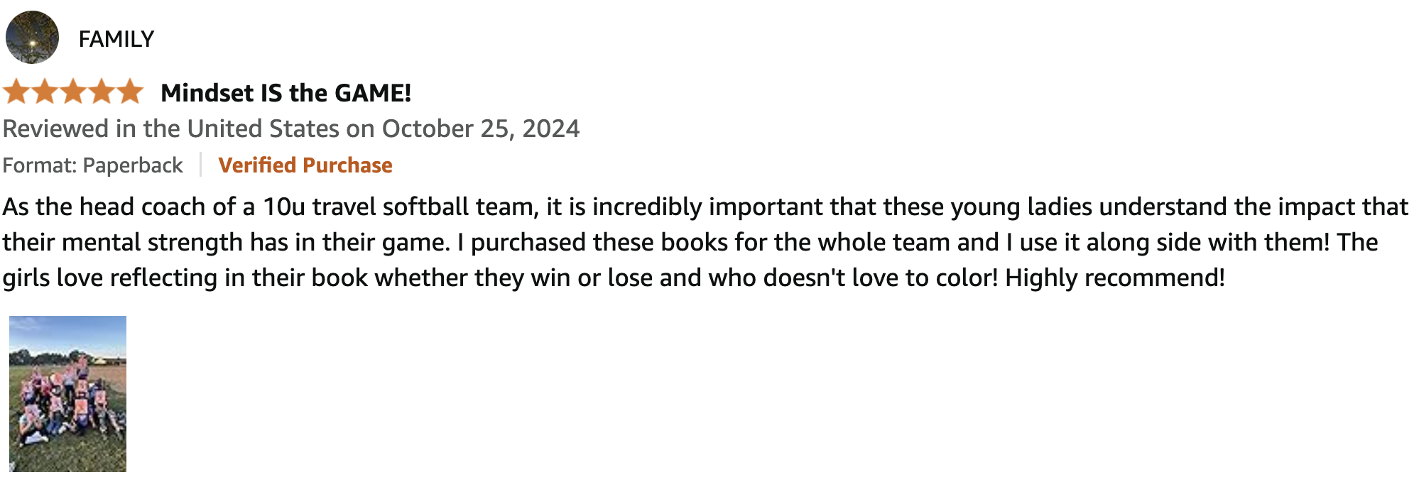 Creator of “The Softball Mindset” Workbook, “The Soccer Mindset” Workbook, “The Volleyball Mindset” and “The Fearless Mindset” Workbook (2024)